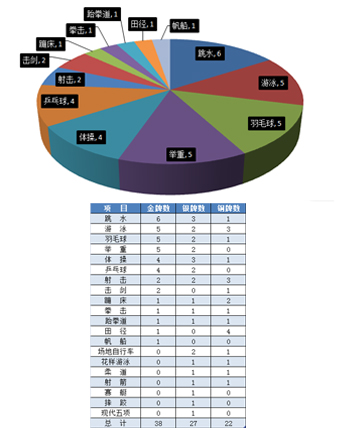 ????潛優(yōu)勢項(xiàng)目取得新進(jìn)展。帆船、擊劍、拳擊、跆拳道等項(xiàng)目共取得5金7銀6銅。特別是基礎(chǔ)大項(xiàng)游泳和田徑取得明顯進(jìn)步,共取得6金2銀7銅,占金牌總數(shù)的16%。