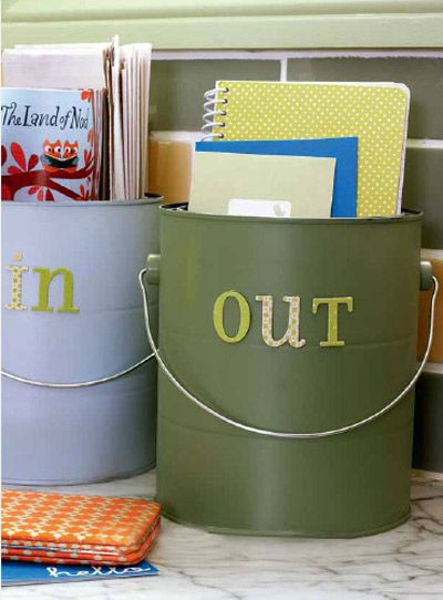 對(duì)小桶進(jìn)行粉刷,然后用剪貼紙制作分類(lèi)標(biāo)簽,貼在小桶上。