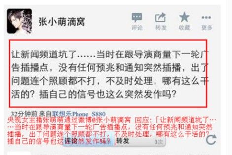 北京時間8月11日下午,倫敦奧運(yùn)會男子十米臺半決賽展開爭奪,張萌萌和嘉賓胡佳擔(dān)任央視解說員。但在這個直播節(jié)目中,卻發(fā)生了一個意外。張萌萌忘記關(guān)話筒,她對胡佳說的話清晰地呈現(xiàn)了出來。她大聲地感嘆道: "哇,(選手)沒有一個不變態(tài)的,不是單親就是那啥。"近日,張萌萌在微博中回應(yīng),稱當(dāng)時是和導(dǎo)演商量何時插入廣告,并表示新聞頻道突然插播廣告,沒有任何預(yù)兆和通知,并且出了問題