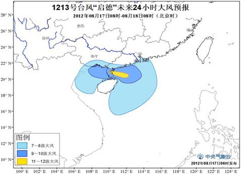 受“啟德”和西南季風(fēng)的共同影響,17日08時到18日08時,南海西北部海面、廣東西部沿海、海南東部及北部沿海、瓊州海峽、廣西沿海、北部灣海面將有7-9級大風(fēng),部分海域或地區(qū)風(fēng)力可達(dá)10-11級,“啟德”中心經(jīng)過的附近海域或地區(qū)的風(fēng)力有12-13級,陣風(fēng)可達(dá)14-15級;廣東西南部、廣西中南部、海南、云南東南部等地有大到暴雨,其中,廣東西南部、廣西南部、海南中北部的部分地區(qū)有大暴雨,局地有特大暴雨(250-300毫米)。