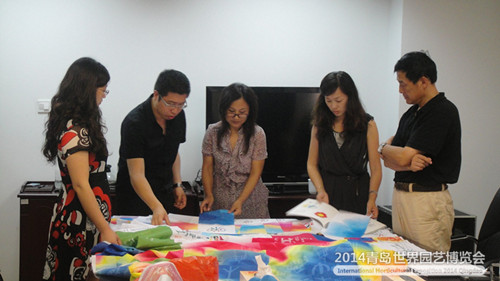 ????8月13日下午, 2014年青島世園會會徽設(shè)計者、清華大學(xué)美術(shù)學(xué)院平面設(shè)計系統(tǒng)開發(fā)研究所所長、視覺傳達(dá)設(shè)計系陳楠副教授應(yīng)邀來青對世園會視覺識別(VI)系統(tǒng)延展使用進(jìn)行現(xiàn)場指導(dǎo)。