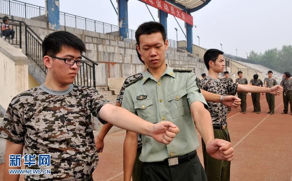 8月28日,一位教官在給軍訓(xùn)的鄭州大學(xué)新生校正動(dòng)作。近日,隨著各地高校新生的入學(xué),磨練意志、學(xué)習(xí)集體生活的軍訓(xùn)陸續(xù)開始,這也成為學(xué)子們大學(xué)生活的第一課。