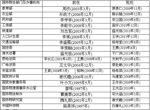 2008年3月以來(lái)國(guó)務(wù)院各部門及辦事機(jī)構(gòu)更換的一把手 (附任職時(shí)間)
