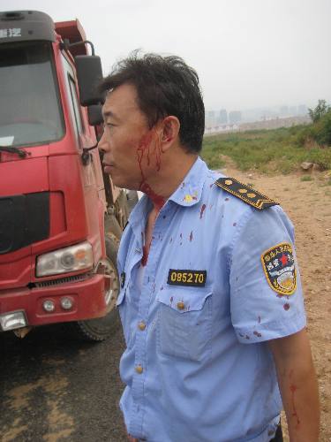 ????令人沒想到的是,被查大貨司機(jī)不但拒不配合調(diào)查,還叫來一幫社會人員阻撓執(zhí)法,想強(qiáng)行開走違法車輛。其中有一名七十多歲的老人情緒激動,推搡執(zhí)法人員并躺在地上,稱被執(zhí)法人員毆打。其他幾名身份不明的人員手持棒球棍、警用電擊棍、警用甩棍等器械追打城管執(zhí)法人員,將2名執(zhí)法人員打傷,其中一名執(zhí)法人員頭部受傷,鮮血直流。執(zhí)法人員立即撥打了110報警,警察隨后趕到現(xiàn)場,將幾名打人者控制。案件現(xiàn)正在調(diào)查處理過程中。