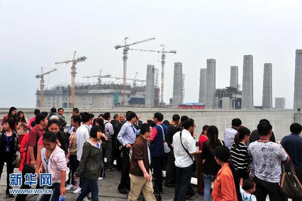 10月3日,游客在三峽大壩旅游區(qū)的觀景平臺上游覽。當(dāng)日是中秋國慶長假的第四天,三峽大壩旅游區(qū)迎來旅游客流高峰,共接待中外游客4.7萬人次,創(chuàng)歷史新高。據(jù)長江三峽旅游公司市場部有關(guān)負(fù)責(zé)人介紹,中秋國慶長假四天來,三峽大壩旅游區(qū)已接待中外游客達(dá)11.5萬人次,整個長假預(yù)計游客人數(shù)有望達(dá)20萬人次。新華社發(fā)(王輝富攝)