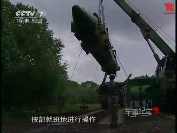 資料圖:二炮部隊(duì)野外吊裝疑似新型東風(fēng)25中程戰(zhàn)略導(dǎo)彈。