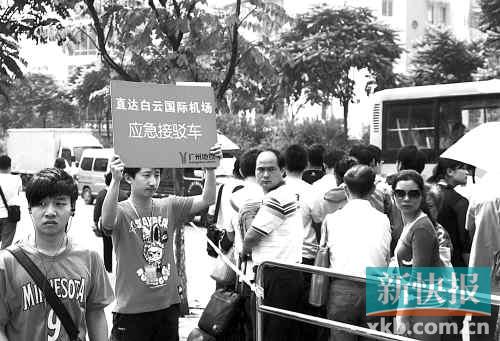 同和站C出口,地鐵公司設(shè)置了白云機(jī)場應(yīng)急接駁車。(記者畢志毅/攝)