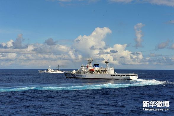日方船只在海面上急速調(diào)頭
