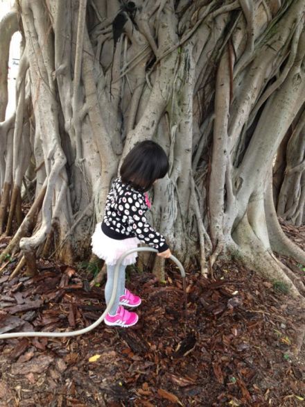 王詩齡給樹澆水