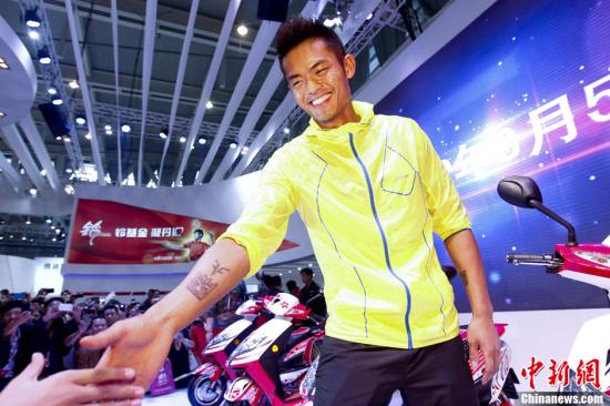 10月20日,羽毛球奧運(yùn)冠軍林丹現(xiàn)身南京電動車展,為支持愛心學(xué)校建設(shè)、青少年體育發(fā)展和綠色出行的“鈴基金”助陣。圖為現(xiàn)場拍賣由林丹親筆簽名的電動車,拍賣所得收入成為第一筆到賬的公益基金。