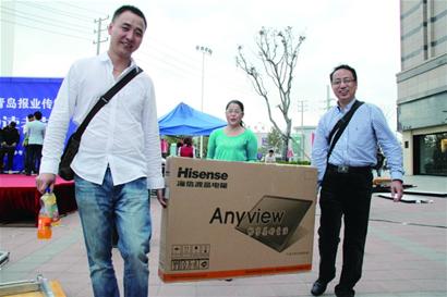 昨天下午2時30分,在市民注視下,主持人邀請現(xiàn)場的小朋友抽取了8名訂報的幸運(yùn)讀者,家住百通花園的薛紅麗女士,幸運(yùn)地獲得了價值5000元的一等獎,另有3名讀者獲得了二等獎、4名讀者獲得了三等獎。記者注意到,這8名中獎的讀者訂閱的都是青島早報。下午3時30分左右,頒獎活動正式開始,青島報業(yè)傳媒集團(tuán)副總經(jīng)理陶進(jìn),為中獎的訂報市民現(xiàn)場頒發(fā)了獎品?!皬膩頉]中過大獎,沒想到訂青島早報這一次真的中獎了?!苯舆^液晶電視的薛紅麗女士告訴記者,多年來她已經(jīng)養(yǎng)成了閱讀報紙的習(xí)慣,“以后我們還會繼續(xù)訂閱青島早報?!毖t麗說。