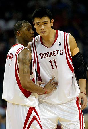 2007年5月1日,季后賽火箭對爵士,麥迪得到26分16助攻,姚明貢獻(xiàn)21分15籃板。在NBA歷史上,同一支球隊(duì)在一場季后賽中有兩名球員同時(shí)拿到20+15的成績,還要追溯到11年前。