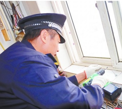 民警正在為居民安裝防拉栓。