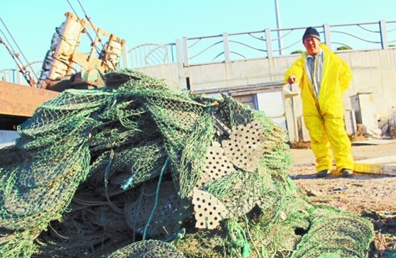 用于養(yǎng)殖扇貝的籠子被破壞。