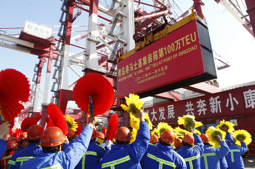 青島港馬士基集裝箱突破100萬標準箱慶典儀式隆重舉行