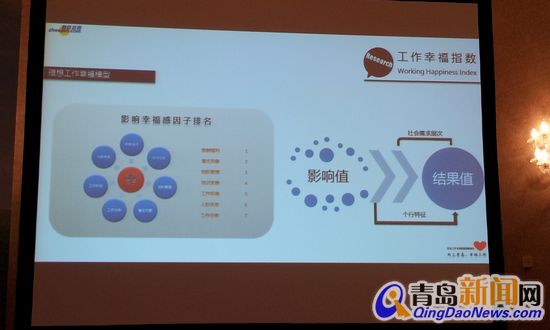 而就調(diào)研結(jié)果來看,當(dāng)天的調(diào)查報告的許多內(nèi)容可謂聞所未聞。例如,在工作幸福模式中,分為企業(yè)影響值和個人關(guān)鍵值,結(jié)果發(fā)現(xiàn),企業(yè)“影響值”所占比重較大,企業(yè)通過對“影響值”的細(xì)微改善,可以有效提升員工的幸福感;而個人關(guān)鍵值對幸福感會有一定的作用,個性特征在一定程度上會影響到幸福感,但隨著員工在企業(yè)服務(wù)年限的增加,個性特征對幸福感的影響值,靈敏性相對減弱;員工所處的社會需求層次對于幸福感影響巨大,同時在不同社會需求階層中個人關(guān)鍵值所占的比重也會完全不同。