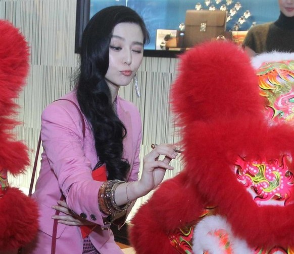 范冰冰賣萌被猥瑣大叔攬入懷 嘴刁紅包剪彩(組圖)