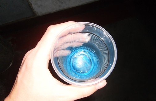 首先,記者將潔廁液20毫升左右倒入塑料杯中,隨后又將20毫升左右的消毒液也倒入了杯中,兩種藍(lán)色液體接觸后產(chǎn)生了白色泡沫,混合液體也變成了淡黃色,散發(fā)出刺鼻的綠色的氣體,由于事先未采取防護(hù)措施,吸入了該氣體的記者立刻感覺呼吸有些不暢、頭暈惡心,幾乎站立不住。坐在通風(fēng)的位置休息幾分鐘之后,才感覺到舒服了一點(diǎn)。