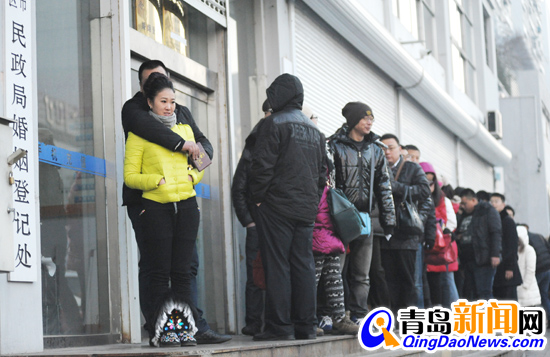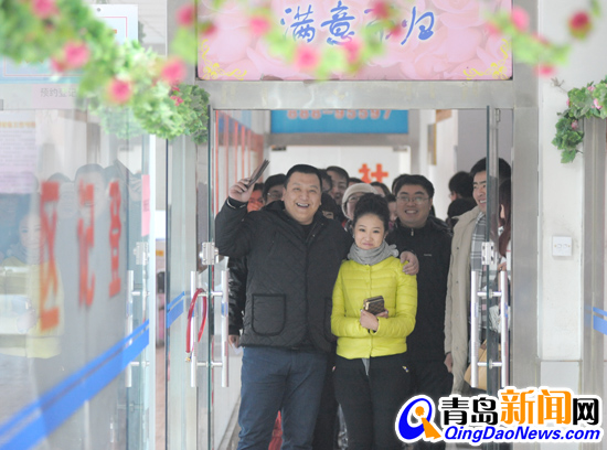 ??? 今天早上記者在四方婚姻登記處看到,還不到7時30分,登記處門口就排起了一條等待登記結(jié)婚的長龍,據(jù)了解,當天共有123對預約登記的新人領(lǐng)到結(jié)婚證,另有100多對新人現(xiàn)場領(lǐng)證。(記者張力偉)