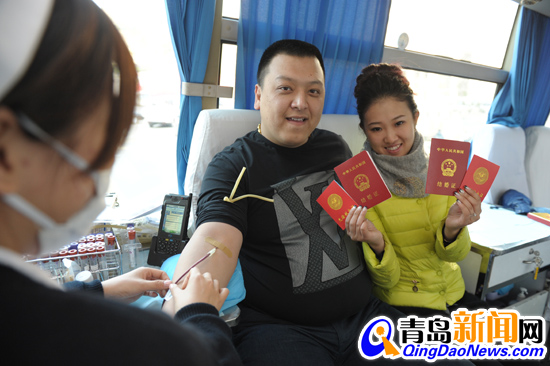 ????青島新聞網(wǎng)12月12日訊??“我們倆為了趕在世界示愛日這一天登記結(jié)婚,凌晨四點就過來排隊了?!币粚π氯嗽谒姆交橐龅怯浱幐嬖V記者,這對新人領(lǐng)完證后剛從婚姻登記處出來,就上了停在門口的獻血車上,以無償獻血的方式紀念領(lǐng)證結(jié)婚。???