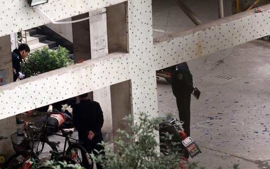 經(jīng)核查,死者何彬系柳州市規(guī)劃局局長;傷者系何彬妻子陳某。圖為死者躺在地上。