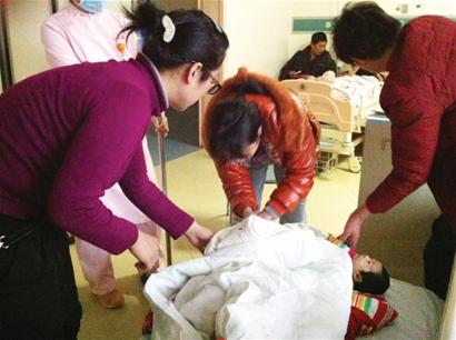 12月10日上午,剛滿40天的寶寶突然有些感冒,不斷喘粗氣。冷女士挺擔心,就趕緊帶寶寶來到膠州市人民醫(yī)院。在小兒科,寶寶被診斷為肺炎和支氣管炎,需要打吊瓶治療?!爱敃r小兒科沒有床位,我們?yōu)榱舜虻跗恐缓妹刻烊メt(yī)院一次。直到第3天,醫(yī)院騰出病床了,就通知我們住進去。 ”住進醫(yī)院,冷女士和牟先生也暫時安心了??勺∵M病房后,寶寶還一直哭鬧,把冷女士兩人折騰得夠嗆。每天晚上,冷女士都在病床邊陪著兒子,牟先生就回家照顧女兒。