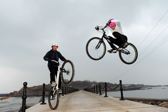 獨(dú)家:青島大三生玩極限 自行車彈跳全國最高(圖)