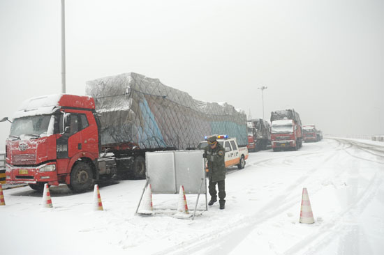高速路環(huán)衛(wèi)工人正在加緊清理積雪 張力偉攝