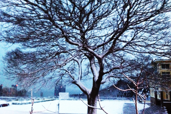 昨日,島城迎來今冬首場大雪,千樹萬樹梨花開(青島新聞網(wǎng)記者周琦 攝)