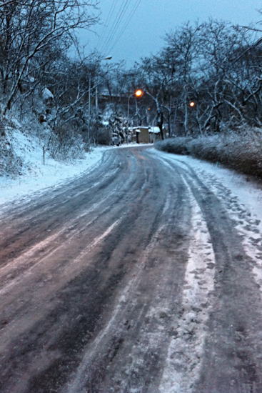 島城迎來今冬首場大雪,道路冰封泥濘難行(青島新聞網(wǎng)記者周琦 攝)