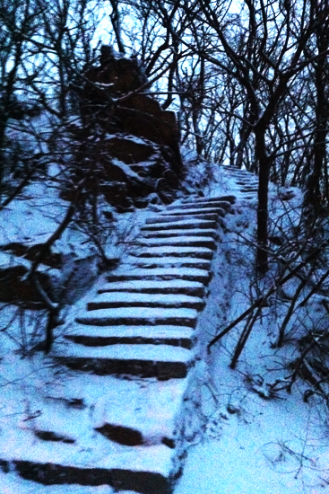 雪中拾級(jí)登山,別有情趣(青島新聞網(wǎng)記者周琦 攝)
