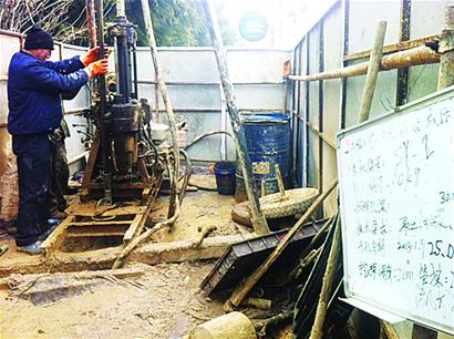 “這個(gè)機(jī)器叫巖芯鉆,它就像咱們平常打井一樣,不斷往地下鉆。 ”一名工人一邊操作著,一邊對(duì)記者說(shuō):“它是用來(lái)地質(zhì)勘測(cè)用的,就是看看咱們這個(gè)地下是個(gè)什么情況。 ”記者看到,隨著一陣陣“突突”轟鳴聲,豎立起來(lái)的鐵鉆不斷往下“砸”,不斷有泥漿涌出來(lái)。工人老張說(shuō):“別看它只有四五米高,它可以下鉆到三四十米,勁頭可足了。我們從9日那天開始施工的,到現(xiàn)在已經(jīng)干了好幾天了。 ”
