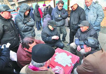 昨天下午,記者來(lái)到李滄大廟和臺(tái)東老年樂(lè)園兩處地點(diǎn),雖然今天潮濕陰冷,但是這兩處地方都擠滿了圍在一起打”夠級(jí)“的市民,男女老少皆有。從他們臉上愉悅的表情可以看出,“夠級(jí)”帶給他們的樂(lè)趣遠(yuǎn)遠(yuǎn)超過(guò)了冷風(fēng)帶來(lái)的寒意。在臺(tái)東老年樂(lè)園旁邊的一個(gè)小賣(mài)店里記者了解到,這里成為撲克大軍的聚集地已經(jīng)有二十多年的時(shí)間了,正因?yàn)橛羞@個(gè)資源,這附近的小賣(mài)店都有撲克