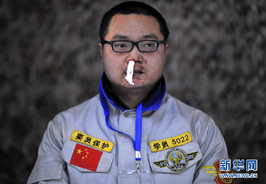 隊員張文籍在與隊友一對一格斗中鼻子被打流血。最終,他沒能堅持完成所有的項目而被淘汰出局。職業(yè)保鏢訓(xùn)練,首先要解決的是心理關(guān),要在不斷的難以想象的殘酷訓(xùn)練中,培養(yǎng)隊員的忍耐力,以實現(xiàn)其在最嚴(yán)酷的條件下,保持冷靜的心理素質(zhì)。