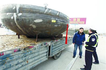 ????上午11時許,一輛拉著兩個“超級大碗”的貨車引起高速交警注意,由于大碗直徑達(dá)到3米,超過了車體的寬度,兩邊的擋板都垂落在下方。大碗底部是圓的,因此用三角鐵焊在了車體上。看到交警檢查,駕駛員連忙拿出了 《山東省運載超限物品車輛通行證明》,表明自己運輸行為的合法?!拔覐奶┌策\載兩個油罐的封頭到威海石島,全程走高速,限速每小時70公里?!瘪{駛員趙某說。