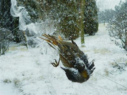 綠化帶里現(xiàn)20米長大網(wǎng) 斑鳩被網(wǎng)住凍僵慘死(圖)