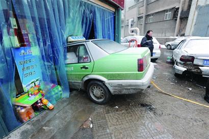 “當(dāng)時(shí)就聽到門外傳來一陣刺耳的剎車聲?!背欣习逭f,接著有人大喊:“快讓開!快讓開!”他還沒來得及放下手中的報(bào)紙,忽然一聲巨響,讓他驚訝的是,一輛出租車撞破超市大門后,筆直地沖進(jìn)了店內(nèi)才停下,而車前輪距離他所坐的座位只有不到5厘米的距離。當(dāng)時(shí)店內(nèi)還有客人在購物。當(dāng)時(shí)站在路邊的李先生也目睹了此事:“出租車沿著鐵山路從南往北開,起亞轎車沿著青城路自西向東開,由于路滑兩車在路口相撞,出租車改變方向,碾過臺階,上了人行道,然后沖進(jìn)了超市里。