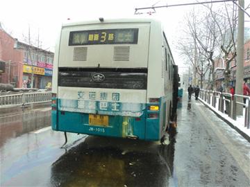 昨日中午11時(shí)20分許,記者接到市民報(bào)料后迅速趕到現(xiàn)場(chǎng),兩輛隧道3路公交車(chē)停在膠州路上,后車(chē)車(chē)牌沾滿(mǎn)了黃色的干粉,車(chē)底也有兩平方米左右的粉末。 “后面那輛車(chē),剛才車(chē)尾起火了,前面那輛車(chē)帶著車(chē)隊(duì)的人過(guò)來(lái)了。 ”一名路人介紹道。記者看到,公交車(chē)尾部油污已被火焰烤化,順著雪水向西流出三米多遠(yuǎn)。