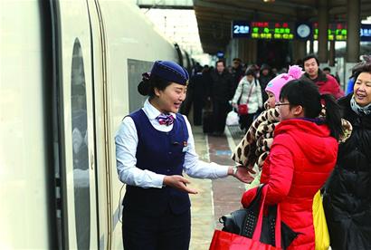 2001年,從鐵路學(xué)校畢業(yè)后王紅開始了列車員工作,一做就是11年,她從一名普通的列車員再到列車廣播員,三年前通過考試成長為一名列車長。11年來她只在家里過過兩個春節(jié),今年的春節(jié)她同樣沒法在家過。從最初的綠皮車到空調(diào)車,再到如今的動車、高鐵,王紅見證了鐵路的變遷,也深知游子返鄉(xiāng)旅途的不易,她的心中總是裝著旅客?!盁o論是列車員還是廣播員,還是列車長,都是為旅客服務(wù),這是我們的職責(zé)。”