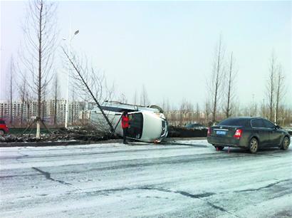 記者看到,由于道路太滑,一輛白色商務(wù)車(chē)開(kāi)到了綠化帶里,車(chē)頭的保險(xiǎn)杠都已經(jīng)破碎脫落了。不遠(yuǎn)處,另外一輛黑色轎車(chē)則一頭扎到了路邊的路基石上。 5個(gè)人在一邊焦急地打著電話(huà)。剛往前走了不到50米,記者又看到了一起3車(chē)連撞的交通事故。在不到200米的距離,記者就看到了4起因?yàn)槁访鏉窕瑢?dǎo)致的交通事故。(記者 田 璐)