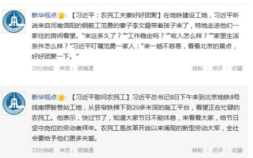 中新網(wǎng)電 據(jù)新華社“新華視點”的官方微博報道,中共中央總書記習(xí)近平8日下午來到北京地鐵8號線南鑼鼓巷站工地,從狹窄鐵梯下到20多米深的施工平臺,看望正在忙碌的農(nóng)民工。