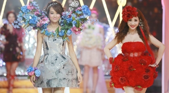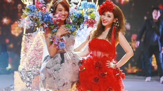 柳巖穿透視玫瑰裝頭戴大紅花 朱丹同臺拼身材(圖)