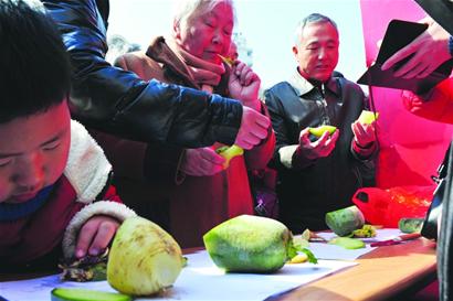 昨天,蘿卜·元宵山會(huì)蘿卜的銷(xiāo)售量再創(chuàng)新高,據(jù)統(tǒng)計(jì),昨天共有42萬(wàn)人次逛蘿卜會(huì),光蘿卜就吃掉了93噸??粗鴷?huì)場(chǎng)上琳瑯滿(mǎn)目的蘿卜,到底哪一種最受青島市民的喜愛(ài)?昨天,本報(bào)首次在文化街設(shè)立蘿卜擂臺(tái)賽,隨機(jī)邀請(qǐng)了50位市民品嘗蘿卜會(huì)上熱銷(xiāo)的7種蘿卜,以甜度、辣味、水分三個(gè)標(biāo)準(zhǔn)投票選出味道最棒的蘿卜。評(píng)選結(jié)果是:天津沙窩蘿卜最甜,萊西水果蘿卜最辣,萊陽(yáng)蘿卜水分最大。