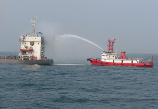 到達災船失事海域后,按照隋局長命令,同“海巡11”輪進行聯(lián)絡,請求靠近災船,進行火情偵查。但是海事局指示:由于災船已經(jīng)進行二氧化碳封艙滅火,要求該局消防船原地待命,繼續(xù)觀察火情。鑒于這種情況,消防船在安全海域進行待命,隨時等候出動命令。