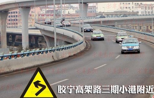 ????25日,記者也前往這個地方進行了探訪,從膠州路市立醫(yī)院下來進入膠寧高架路三期后,車子行駛不遠就能看到“限速40”的警示牌,在行駛到小港附近時便是黃師傅所說的那個彎道,記者目測了一下,這個彎道幾乎呈90度角向左轉彎,與鐵港立交橋上的那個彎道極像,記者所乘坐的車子按照40公里每小時的速度行駛,仍能感到整個人有向右甩去的感覺,而旁邊的汽車還時不時從身旁超過。