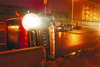 出租車停車看事故熱鬧 反被后車追尾發(fā)生側(cè)翻(圖)