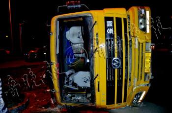 ????大貨躲警察深夜側(cè)翻