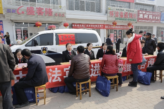 青島新聞網(wǎng)訊 在“三八”國(guó)際婦女節(jié)到來(lái)之際,山東省青島市中級(jí)人民法院組織法官志愿者開(kāi)展送法進(jìn)社區(qū)活動(dòng),法官就婚姻、繼承、贍養(yǎng)及道路交通等與群眾利益息息相關(guān)的問(wèn)題,耐心解答群眾的法律問(wèn)題。圖為法官志愿者在青島市黃島區(qū)海清鎮(zhèn)舉辦婦女維權(quán)咨詢活動(dòng)。(時(shí)滿鑫 王 陽(yáng) 攝)