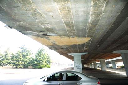 據(jù)司機介紹,雖然橋底貼著“限高3.2米”的標識,但是這個橋洞的北邊高3.9米,南邊卻不到3.2米。司機告訴記者,自己是第一次走這條路,從橋洞北側(cè)駛?cè)胫?,目測車肯定能通過,沒想到這橋洞越來越矮,走了一半被卡在中間?!拔衣犚姾竺妗ɡ怖病瘮嚢韫拮冃蔚穆曇?,心想壞了,肯定是被卡在里面了?!彼緳C說,自己下車之后發(fā)現(xiàn)攪拌罐已經(jīng)變了形,整個車被死死卡在橋洞里動彈不得,往前開不出去,往后也倒不走。