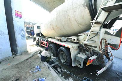 記者繞到車身后看見,攪拌罐下方的八個承重輪已經(jīng)全癟了,一輛載著氣泵的面包車正停在車后方給輪胎加氣?!耙皇俏野褮夥诺簦嚫緵]法開出來!”司機抹了一把額頭上的汗,向記者講述了昨晨的一幕。